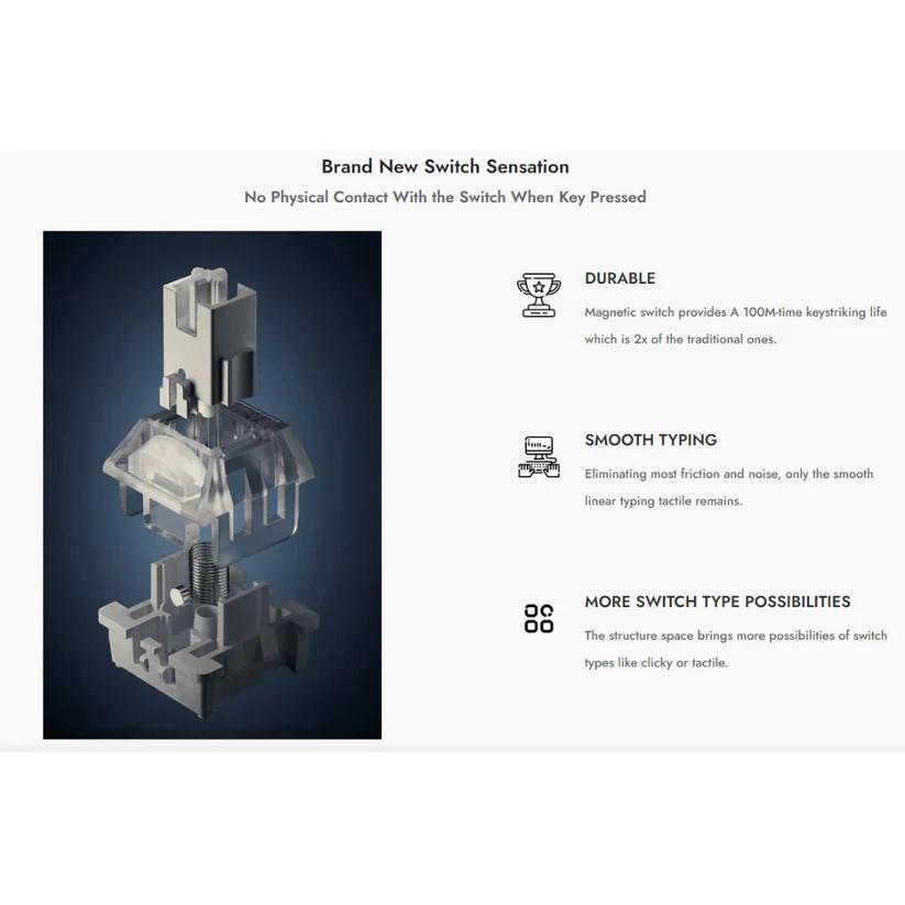 DrunkDeer A75 adalah keyboard dengan switch magnetik yang sangat responsif dan berkabel yang dirancang untuk bermain game dan bekerja. Dengan jarak aktuasi yang dapat disesuaikan (0,2 mm hingga 3,6 mm), tombol aksi ganda, dan fungsi 'Never Miss', keyboard ini memastikan registrasi tombol yang presisi. Teknologi sakelar magnetik, yang didasarkan pada Hall-Effect, menawarkan daya tahan dan pengetikan yang lancar dengan masa pakai penekanan tombol 100 juta kali. Siap untuk MacOS dan Windows, keyboard ini dilengkapi kabel USB Type-C, adaptor C ke A, dan garansi 1 tahun. Perangkat Lunak DrunkDeer Antler memungkinkan penyesuaian sensitivitas pengetikan dan efek LED, yang meningkatkan pengalaman pengguna. Keyboard ini menghadirkan tingkat kecepatan, presisi, dan daya tahan baru untuk berbagai aplikasi.