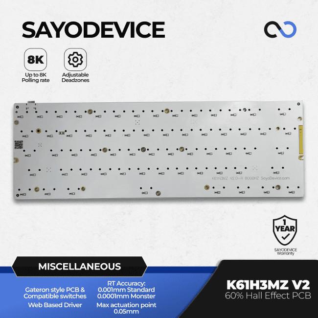SayoDevice K61H3MZ V2.0-R 8K HE PCB Hall Effect 60% Gaming Keyboard Rapid Trigger SOCD RDT
